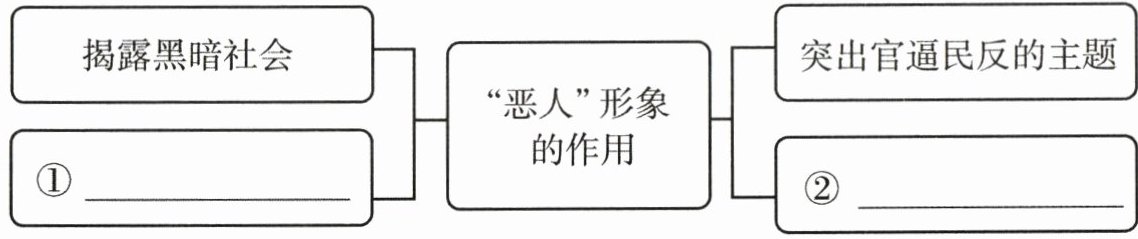 (2) 新趋势 思维导图 《水浒传》中的"恶人"形象对小说的主题、情节、主要人物都有不可或缺的作用,请补全下面思维导图的内容。(2分)