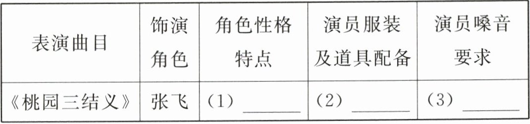 15. 新趋势 实践探究 学校成立了京剧社团,请你结合材料三,帮助导演完成下表。(3 分)