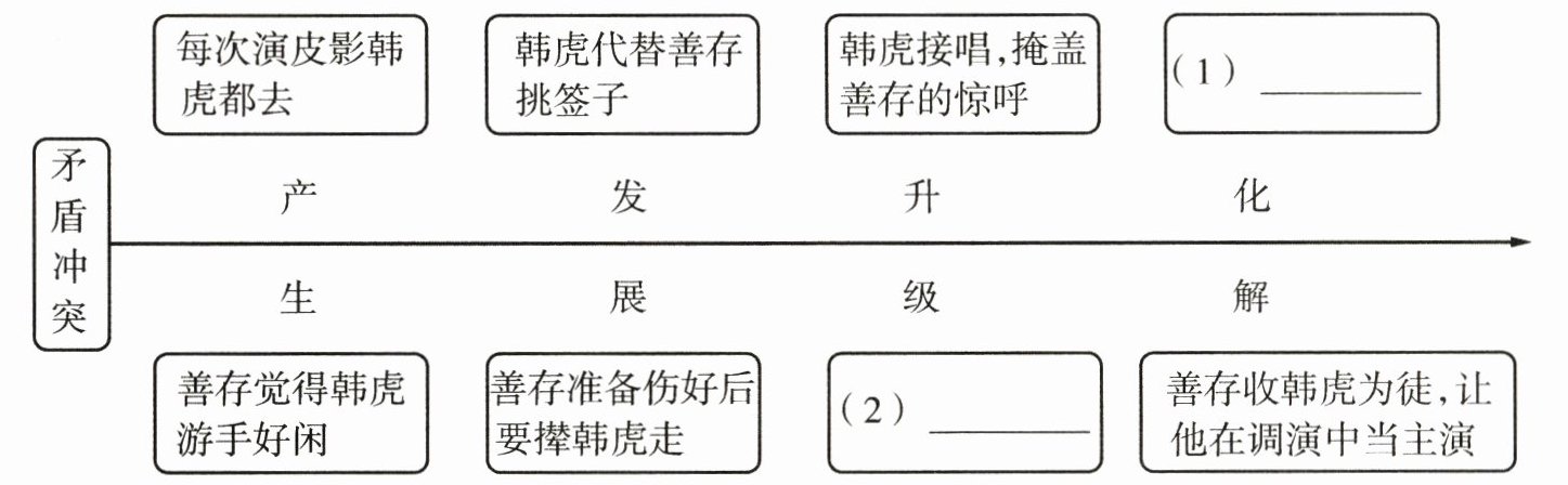 18. 新趋势 情节梳理 编剧组要将小说改编成四幕剧,请你从矛盾冲突的角度梳理小说情节。(6 分)