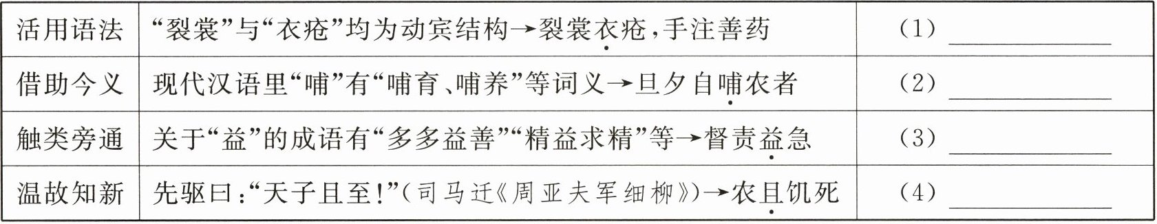 |温故知新|先驱曰:“天子且至!”(司马迁《周亚夫军细柳》)→农且饥死|(4)______|
