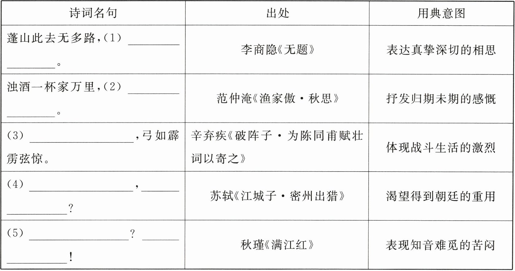 |蓬山此去无多路,(1)______。|李商隐《无题》|表达真挚深切的相思|