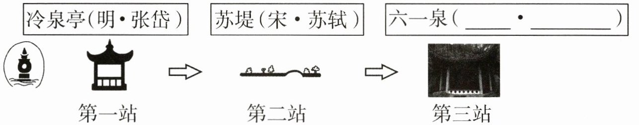 11. 按照图标补全西湖一日游景点涉及的文人及其朝代。(1分)