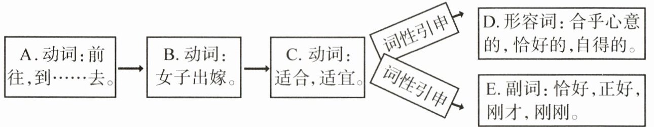 8. 【按图索义】请根据“适”字意义演变图示,为下列句子中加点的“适”字选择相应的释义。(填序号)(4 分)