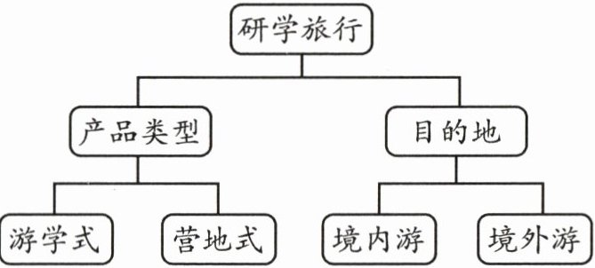 【材料二】目前,研学旅行项目庞杂。为帮助同学们理清研学旅行的类型,张旭同学查阅信息后,发现研学旅行可以从不同的角度进行分类,并绘制了“研学旅行分类结构图”。