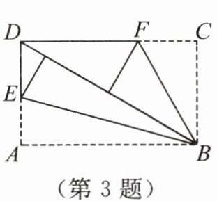 3. 如图,将一张长方形纸片 ABCD 折叠两次,使边 AB,CB 均落在 BD 上,得到折痕 BE,BF,则$∠EBF$的度数为 (