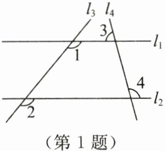 1. (2024·内蒙古呼和浩特)如图,直线$l_{1}和l_{2}被直线l_{3}和l_{4}$所截,$∠1= ∠2= 130^{\circ },∠3= 75^{\circ },则∠4$的度数为 (