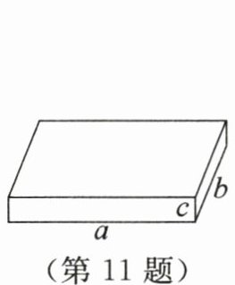 11. 小明在家用剪刀剪开一个如图所示的长方体纸盒,得到其展开图.若此长方体纸盒的长、宽、高分别是 a,b,c($a>b>c$),则小明剪得的展开图的周长最大为______.(用含 a,b,c 的代数式表示)