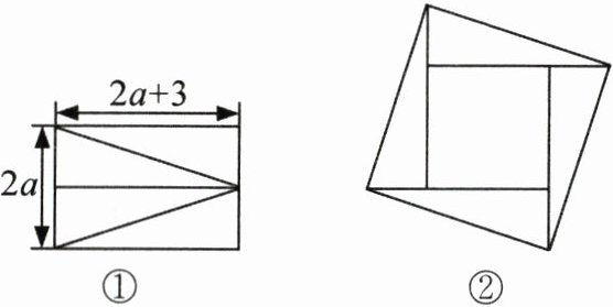 (1)由题意,得题图②中小正方形的边长为2a+3-a=a+3.(2)当a=3时,a+3=6,则该小正方形的面积是$6^{2}=36$.