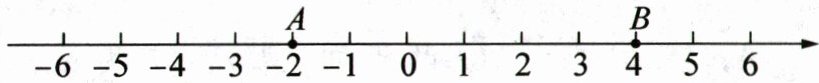 (1)由题图,得点B表示的数是4.又P,B两点之间的距离为2,所以点P表示的数是4 - 2 = 2或4 + 2 = 6;