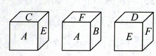 22. (6分)新素养推理能力一个正方体的六个面分别标有字母A,B,C,D,E,F,从三个不同方向看到的图形如图所示.