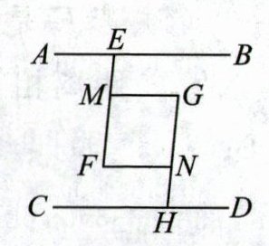 21. (4分)中国汉字博大精深,方块文字智慧灵秀,奥妙无穷.如图是由“互”字抽象而成的几何图形,其中AB//CD,MG//FN,E,M,F三点在同一条直线上,G,N,H三点在同一条直线上,且∠EFN = ∠G.