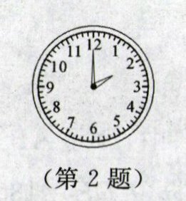 2. (2024·广西)如图,2 时整,钟表的时针和分针所成的锐角为 (