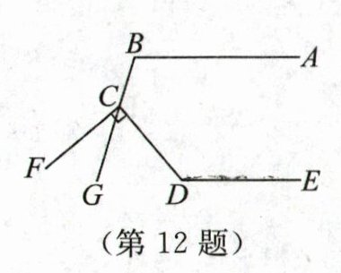 12. 如图,$AB// DE,FC⊥CD$于点 C,$∠ABC= 107^{\circ },∠CDE= 130^{\circ }$,点 G 在 BC 的延长线上,则$∠FCG$的度数是____.