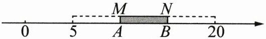 16. (12分)如图,有一根木棒MN放置在数轴上,它的两端M,N分别落在A,B两点处.将木棒在数轴上水平移动,当点M移动到点B时,点N所对应的数为20;当点N移动到点A时,点M所对应的数为5(单位:cm).