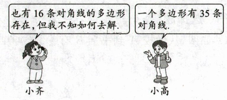 (1),得$\frac{n(n−3)}{2}$=16.所以 n(n−3)=32.又 7×4=28,8×5=40,所以不存在整数 n,使 n(n−3)=32,即假设不成立.所以小齐说的多边形不存在.