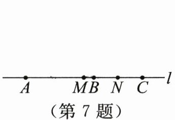 7. (2025·江苏无锡期末)如图,$ A $,$ B $,$ C $ 三点依次在直线 $ l $ 上,$ M $ 是线段 $ AC $ 的中点,$ N $ 是线段 $ BC $ 的中点.若想求出 $ MN $ 的长,则需要的条件可以是 (
