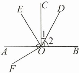 23. (6 分)如图,点 $ O $ 在直线 $ AB $ 上,$ CO⊥AB $ 于点 $ O $,$ ∠2-∠1= 34^{\circ} $,$ OE $ 是 $ ∠AOD $ 的平分线,$ OF⊥OE $ 于点 $ O $.