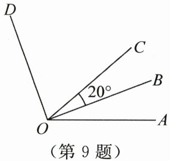 9. 如图,$\angle BOC$ 在 $\angle AOD$ 的内部,且 $\angle BOC = 20^{\circ}$.若 $\angle AOD$ 的度数是一个正整数,则图中所有角的度数之和可能是(