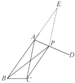 A 解析:如图,在BA的延长线上取点E,使AE=AC,连接PE。因为AD是△ABC外角的平分线,所以∠PAC=∠PAE。在△PAC和△PAE中,$\left\{\begin{array}{l} AC=AE,\\ ∠PAC=∠PAE,\\ PA=PA,\end{array}\right. $所以$△PAC\cong$△PAE (SAS),所以PC=PE。因为PB + PE>BE,所以PB + PC>AE + AB,所以PB + PC>AC + AB,即m + n>b + c。