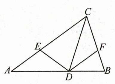 24. (6分)如图,在$△ABC$中,$AB= AC,∠A= 36^{\circ }$,CD是角平分线,点E,F分别在AC,BC上,且$∠EDF= 108^{\circ }$.