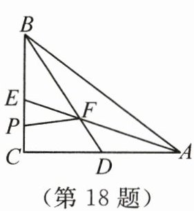 18. 如图,在$Rt△ABC$中,$∠ACB = 90°$,角平分线AE与中线BD交于点F,P为CE的中点,连接PF.若$CP = 2$,$S_{△BFP} = 15$,则AB的长为______.