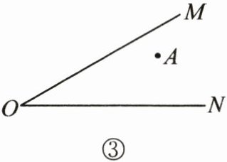应用:如图③,$A是锐角\angle MON$内部任意一点,在$\angle MON的两边OM$,$ON上各取一点B$,$C$,组成$\triangle ABC$,使它的周长最小.