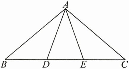21. 如图,在$\triangle ABC$中,$AB= AC$,点D,E在边BC上,且$BD= CE$.