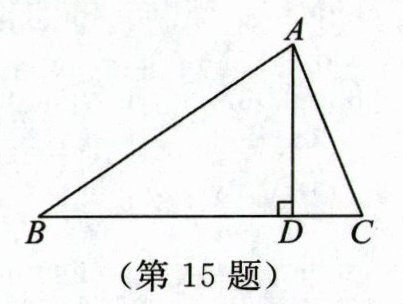 15. 翻折,常常能为问题解决提供思路和方法.如图,在$\triangle ABC$中,$∠C= 2∠B,AD⊥BC$,垂足为$D$,则$BD,CD,AC$之间的数量关系是______