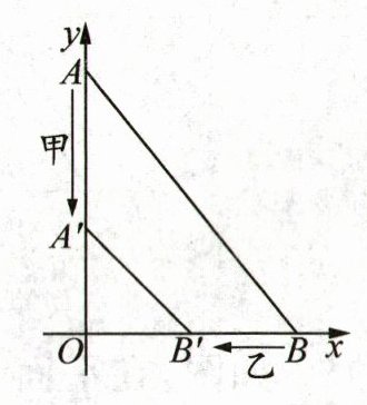 26. (8分)新素养应用意识如图,在平面直角坐标系中,$O$是原点,小虫甲从点$A(0,10)$处开始,以每秒3个单位长度的速度沿$y$轴向下爬行,同时小虫乙从点$B(8,0)$处开始,以每秒2个单位长度的速度沿$x$轴向左爬行,$2s$后,它们分别到达点$A',B'$.