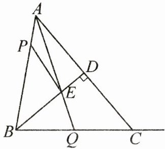 (2) S△BQE = 2S△APE.理由如下:过点E作EM⊥BC于点M,EN⊥AB于点N.因为AP = t cm,BQ = 2t cm,所以BQ = 2AP.因为∠PBE = ∠QBE,所以EM = EN.因为S△APE = 1/2AP·EN,S△BQE = 1/2BQ·EM,所以S△BQE = 2S△APE.