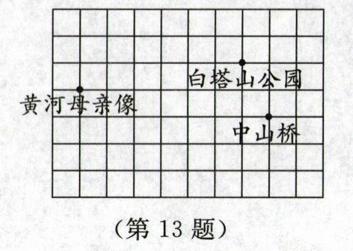 13. 新素养 应用意识 如图,小刚在兰州市平面地图的部分区域建立了平面直角坐标系. 如果白塔山公园的坐标是 $ (2,2) $,中山桥的坐标是 $ (3,0) $,那么黄河母亲像的坐标是______