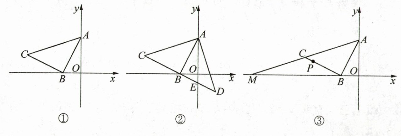 (2) 如图②,直线 $ B C $ 交 $ y $ 轴于点 $ E $,在直线 $ B C $ 上取一点 $ D $,连接 $ A D $. 若 $ A D = A C $,求证:$ B E = D E $;