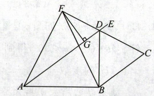 (2)①因为AB = 4,BC = 3,DG = 1,所以BD = BC = 3,AG = BC + DG = 4,所以AD = AG + DG = 5,所以$AB^{2}+BD^{2}=AD^{2}$,所以△ABD是直角三角形,且∠ABD = 90°。如图,过点F作FM⊥AB于点M,交AD于点N,则∠AMF = ∠BMF = 90°,所以∠AMF = ∠ABD,所以FM//BD,所以∠BFM = ∠FBD,∠DFN = ∠CDB。因为∠ADF = ∠CDE = ∠CDB,所以∠ADF = ∠DFN。因为AF = BF,所以∠AFM = ∠BFM,所以∠AFM = ∠FBD。由