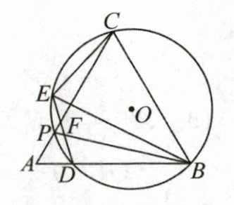 26. (8分)如图,P是等边三角形ABC的边AC上的动点(0°<∠ABP<30°),作△BCP的外接圆⊙O交AB于点D,E是⊙O上一点,且$\overset{\frown}{PD}= \overset{\frown}{PE}$,连接DE,BE,CE,且DE交BP于点F.