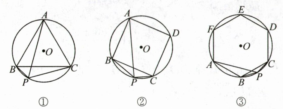 (3) 如图③,六边形ABCDEF是⊙O的内接正六边形,P为$\overset{\frown}{BC}$上一动点,请探究PA,PB,PC三者之间有何数量关系,并给予证明.