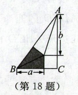 18. (2025·江苏徐州期末)我国魏晋时期的数学家刘徽将勾股形(古人称直角三角形为勾股形)分割成一个正方形和两对全等的直角三角形,得到一个恒等式.后人借助这种分割方法所得的图形证明了勾股定理.如图,在$Rt△ABC$中,$∠C= 90^{\circ}$,若$a= 2,b= 3$,现任意向该图形内掷一枚小针(若掷到边界上,则重掷),则针尖落在阴影区域内的概率为______.