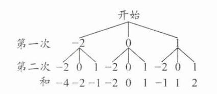 共有9种等可能的结果,其中两次记下的数之和大于0的结果有:(0,1),(1,0),(1,1),共3种。