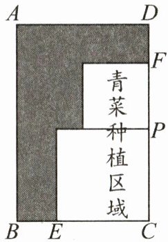 (2)由(1),得EC=(50−x)m,FP=25m,且胡萝卜种植区域的面积是原矩形区域面积的一半,AB=75m,BC=50m.所以75×50−(50−x)²−25²=$\frac{1}{2}$×75×50,解得x₁=50+25$\sqrt{2}$,x₂=50−25$\sqrt{2}$,由题意,得x≤50,所以x=50−25$\sqrt{2}$.则DF的长为(50−25$\sqrt{2}$)m.