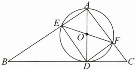 25. (10 分)如图,以 AD 为直径的 $ \odot O $ 与 $ \triangle A B C $ 的边 BC 相切于点 D,分别与 AB,AC 交于 E,F 两点,连接 EF,DF,DE.