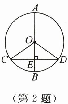 2. (2024·新疆)如图,AB是$\odot O$的直径,CD是$\odot O$的弦,$AB⊥CD$,垂足为E,连接OC,OD.若$CD= 8,OD= 5$,则BE的长为 (