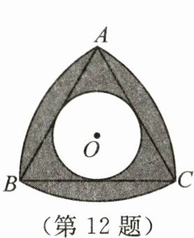 12. 如图,分别以边长为2的等边三角形ABC的三个顶点为圆心,边长为半径作弧,三段弧所围成的图形是一个曲边三角形.若⊙O是△ABC的内切圆,则图中阴影部分的面积为______.