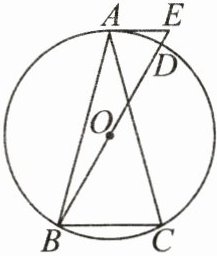 (1)过点A作AF⊥BC于点F.因为AB=AC,所以AF垂直平分BC.又⊙O是△ABC的外接圆,所以点O在BC的垂直平分线上.所以点O在AF上.又AE//BC,所以AF⊥AE,即OA⊥AE.又OA为⊙O的半径,所以直线AE是⊙O的切线.
