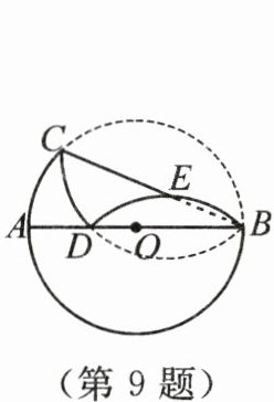9. 如图,AB是$\odot O$的直径,BC是$\odot O$的弦,先将$\widehat {BC}$沿BC翻折交AB于点D,再将$\widehat {BD}$沿AB翻折交BC于点E.若$\widehat {BE}= \widehat {DE}$,设$∠ABC= α$,则α的度数所在范围是 ( )