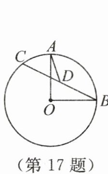 17. 新素养 推理能力 (2025·江苏连云港模拟)如图,$\odot O$的半径是4,A,B两点在$\odot O$上,且$∠AOB= 90^{\circ }$,动点C在$\odot O$上运动(不与A,B两点重合),连接BC,D为线段BC的中点,连接AD,则线段AD的长的最大值为______,最小值为______.
