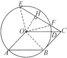 (2)如图,连接 OE,OF,过点 O 作$OH⊥EF$于点 H,则$∠OHE=∠OHC=90^{\circ }$.设$EH=t$,则$EF=2EH=2t$.由
