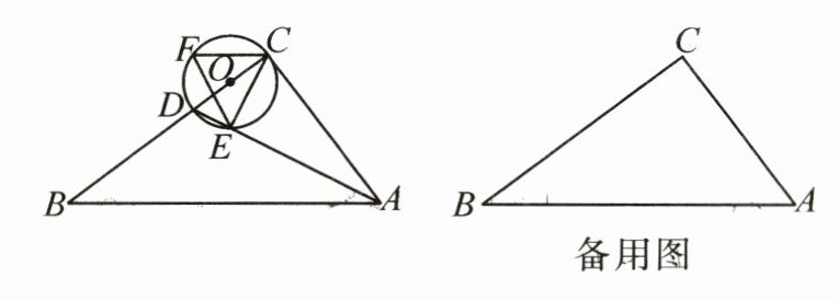 (2) 因为$∠ACB=90^{\circ }$,所以$∠B+∠BAC=90^{\circ }$.又$AB// CF$,所以$∠DCF=∠B$,即$∠DCF+∠BAC=90^{\circ }$.又 CD 是$\odot O$的直径,所以$∠DEC=90^{\circ }$,即$∠DEF+∠CEF=90^{\circ }$.又$∠DEF=∠DCF$,所以$∠BAC=∠CEF$.