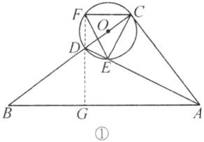 (3) 存在.在$Rt\triangle ABC$中,$∠ACB=90^{\circ }$,$AB=10$,$AC=6$,由勾股定理,得$BC=\sqrt {AB^{2}-AC^{2}}=8$.连接 FD 并延长,交 AB 于点 G.因为四边形 CEDF 为$\odot O$的内接四边形,所以$∠ECF+∠EDF=180^{\circ }$.又$∠EDF+∠ADG=180^{\circ }$,所以$∠ADG=∠ECF$.因为$\triangle CFE$是以 EF 为腰的等腰三角形,所以有$EF=CE$或$EF=CF$两种情况.① 如图①,当$EF=CE$时,$∠EFC=∠ECF$.又$∠CDE=∠EFC$,所以$∠ADG=∠CDE$.因为 CD 为$\odot O$的直径,所以$∠DFC=90^{\circ }$.因为$FC// AB$,所以$∠DFC+∠FGA=180^{\circ }$,即$∠FGA=180^{\circ }-∠DFC=90^{\circ }$.所以$∠FGA=∠ACD$.因为$AD=AD$,所以$\triangle AGD\cong \triangle ACD(AAS)$.所以$AG=AC=6$,$DG=DC$.所以$BG=AB-AG=4$.设$CD=x$,则$BD=BC-CD=8-x$,$DG=x$.在$Rt\triangle BDG$中,由勾股定理,得$BG^{2}+DG^{2}=BD^{2}$,所以$4^{2}+x^{2}=(8-x)^{2}$,解得$x=3$,即$CD=3$;