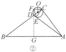 ② 如图②,当$EF=CF$时,$∠CEF=∠ECF$.因为$∠CEF=∠CDF$,所以$∠CDF=∠ECF$.又$∠CDF=∠BDG$,所以$∠BDG=∠ECF=∠ADG$.同理,得$∠FGA=90^{\circ }$,则$FG⊥AB$,即$∠DGB=∠DGA=90^{\circ }$.又$DG=DG$,所以$\triangle BDG\cong \triangle ADG(ASA)$.所以$BD=AD$.设$CD=m$,则$AD=BD=BC-CD=8-m$.在$Rt\triangle ACD$中,由勾股定理,得$AC^{2}+CD^{2}=AD^{2}$,所以$6^{2}+m^{2}=(8-m)^{2}$,解得$m=\frac {7}{4}$,即$CD=\frac {7}{4}$.综上,CD 的长为 3 或$\frac {7}{4}$.