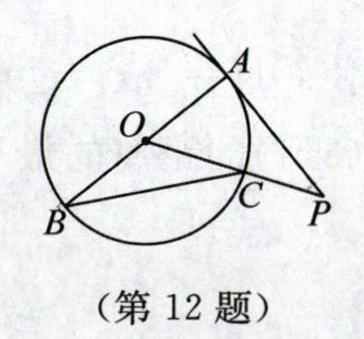 12. (2023·黑龙江龙东地区)如图,AB 是$\odot O$的直径,PA 切$\odot O$于点 A,PO 交$\odot O$于点 C,连接 BC. 若$∠B= 28^{\circ}$,则$∠P$的度数为