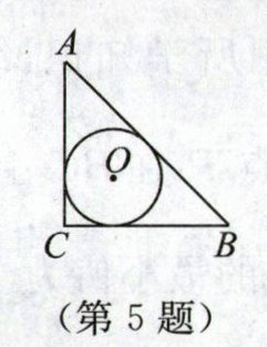 5. (2024·山东滨州)刘徽(今山东滨州人)是魏晋时期我国伟大的数学家,中国古典数学理论的奠基者之一,被誉为“世界古代数学泰斗”.刘徽在注释《九章算术》时十分重视一题多解,其中最典型的是勾股容方和勾股容圆公式的推导,他给出了内切圆直径的多种表达形式.如图,在Rt△ABC中,∠C= 90°,AB,BC,CA的长分别为c,a,b,用含c,a,b的式子表示△ABC的内切圆直径d,则下列错误的是$ ( )A. d= a+b-cB. d= \frac{2ab}{a+b+c}C. d= \sqrt{2(c-a)(c-b)}D. d= $|(a-b)(c-b)|